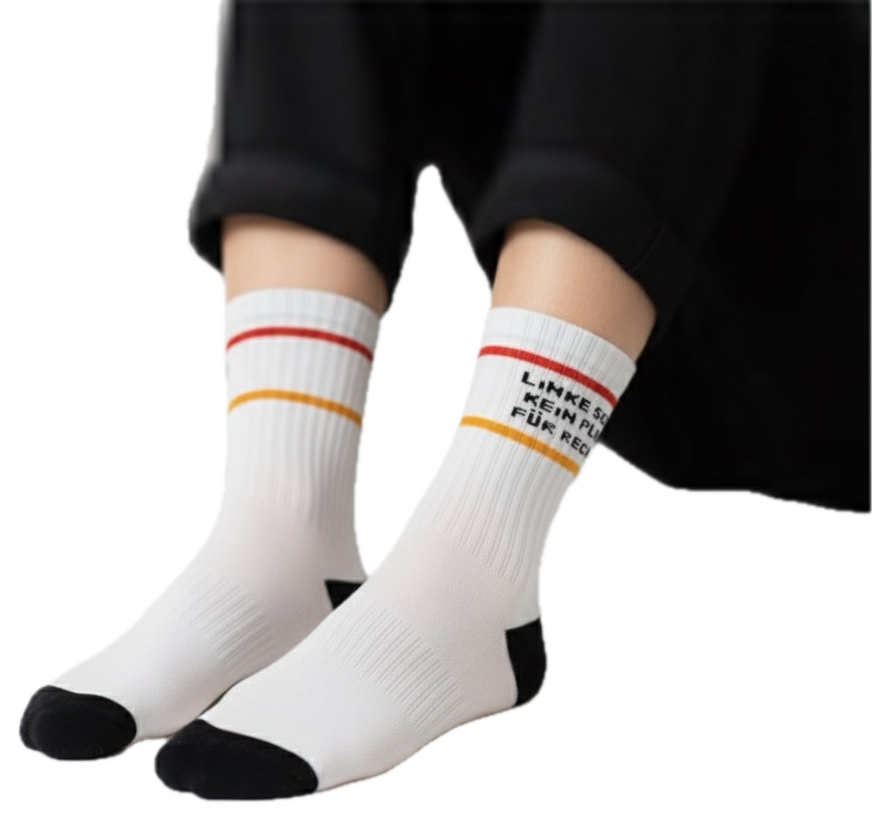 Wer die LINKE SOCKE trägt, macht sichtbar, wofür er oder sie steht.